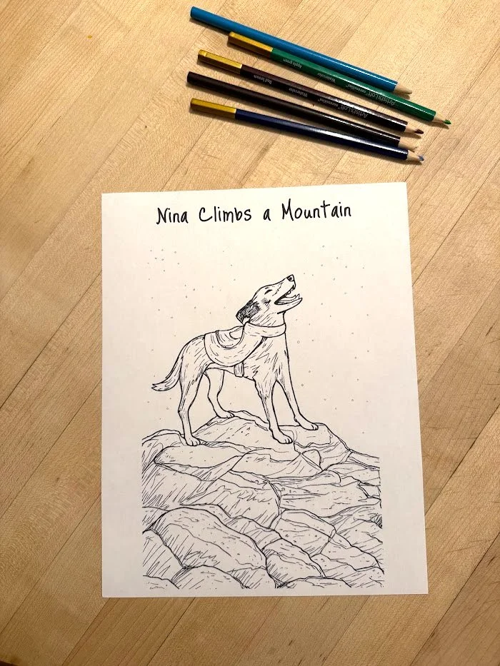 Simple and fun; coloring Nina at the top of a mountain! Great for any age.