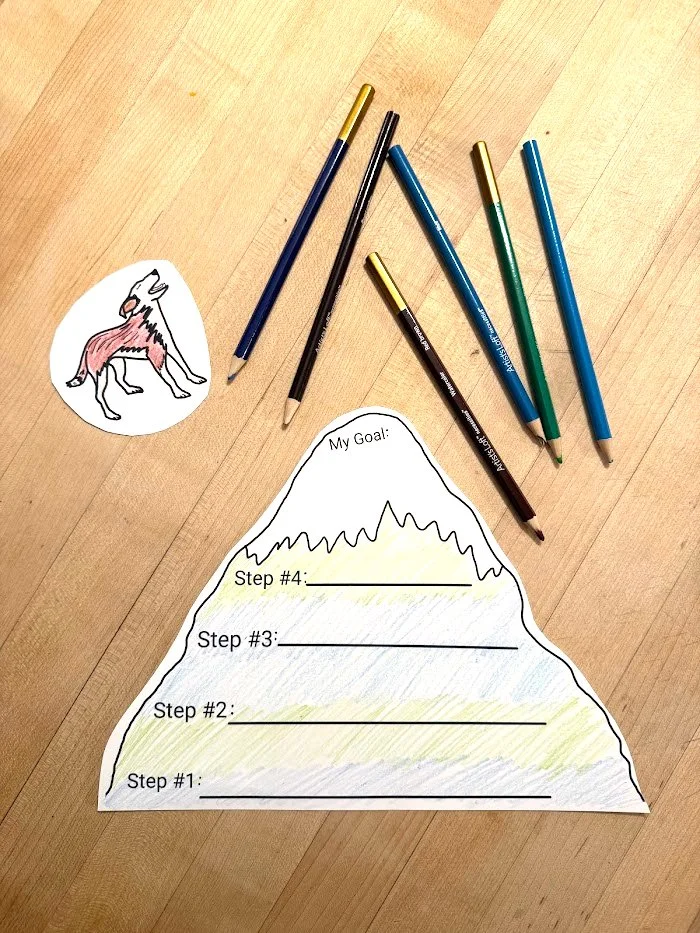 This craft is easy, fun, and can help kids learn how to set goals and accomplish them! Goal Setting Mountain Craft is best for kids in grades 1-4. Parents and teachers are encouraged to help children think of a measurable goal (think “Hit a homerun” vs “Be a good baseball player”). Then, kids can break their bigger goal into 4 smaller steps.