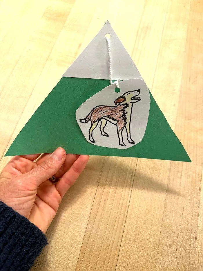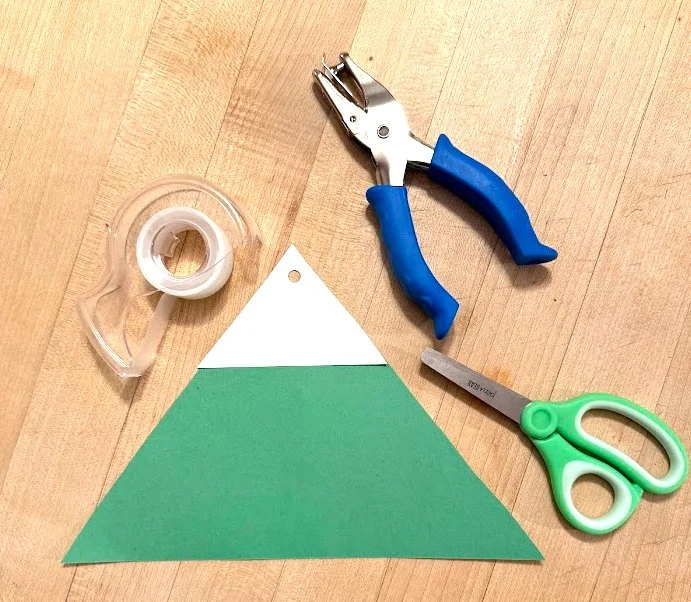 Now tape the mountain top to the larger piece of the mountain. Use either scissors or a hole puncher to punch a hole at the top!